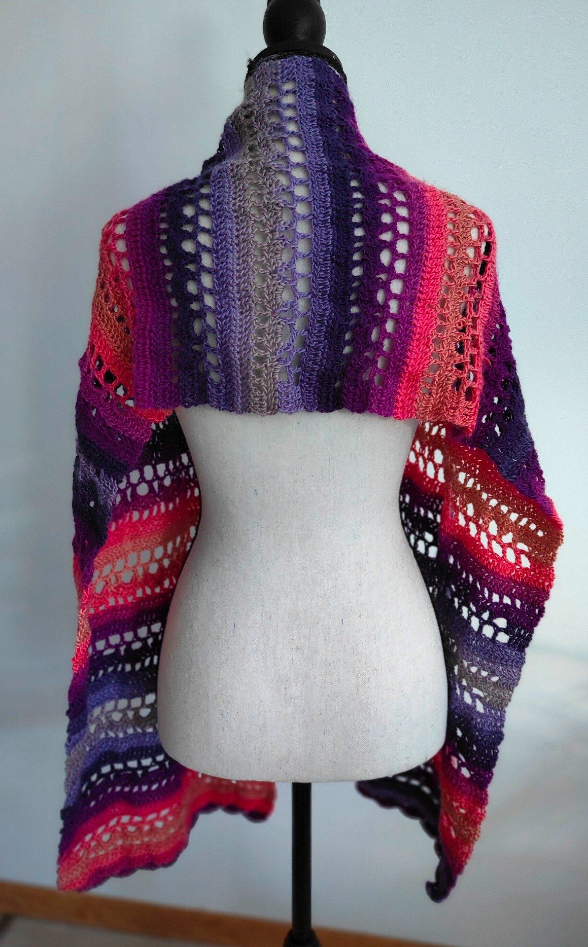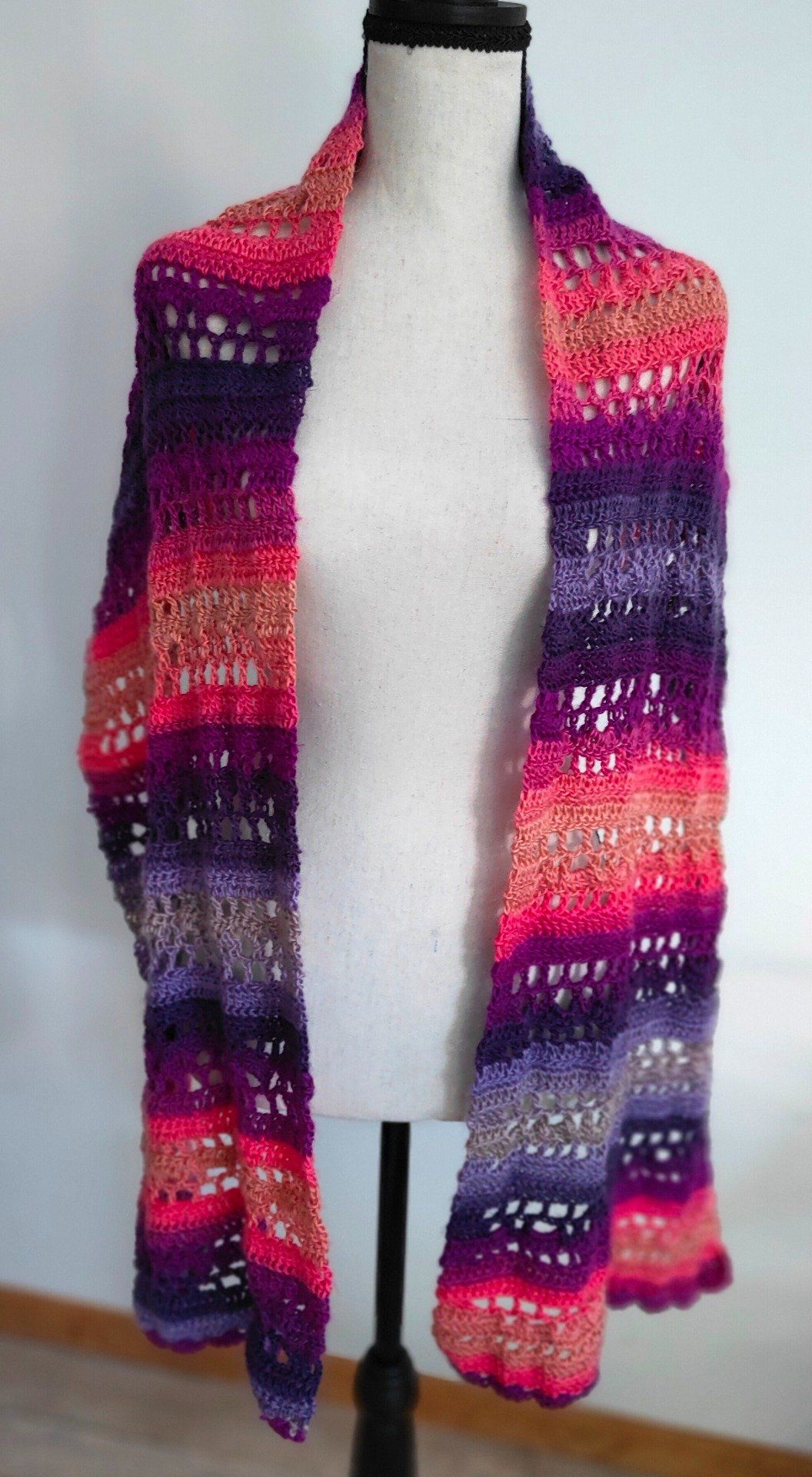 Sa palette dégradée de rose, violet, prune et orange apporte une touche bohème, féminine et chaleureuse à vos tenues hivernales. Longue et généreuse, elle peut se porter autour du cou, en étole ou drapée sur les épaules pour plus de chaleur.