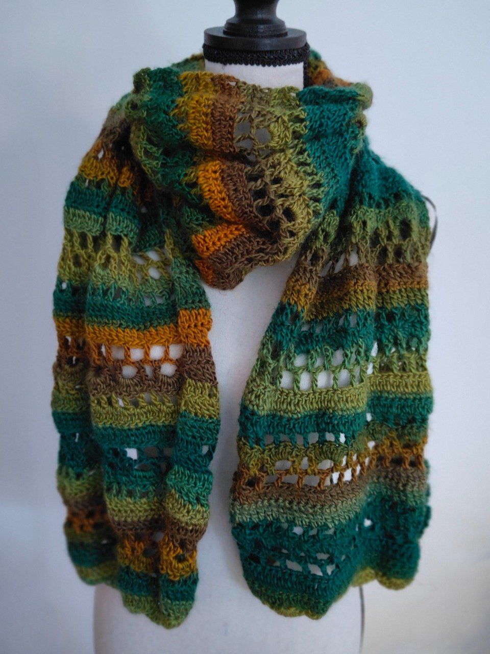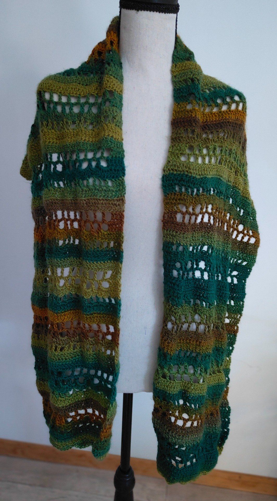 Son dégradé naturel de verts, kaki, brun et ocre évoque les couleurs de la forêt et apporte une touche bohème et élégante à vos tenues hivernales. Longue et généreuse, elle peut se porter autour du cou, en étole ou drapée sur les épaules pour plus de chaleur.